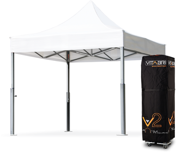La tente pliante V3 pack M2 convient à un usage professionnel à l’épreuve du temps. le textile technique (PVC blanc 480g/m²) confère à cette tente pliante tenue et sécurité.