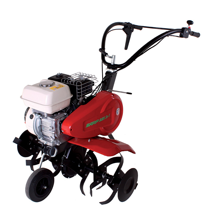 La motobineuse thermique S5H2+1 SARP possède deux vitesses avant et une arrière. Performante et maniable grâce à son guidon elliptique réglable en hauteur et en déport, cette motobineuse vous permettra de labourer la terre d’espaces allant jusque 2500 m2.