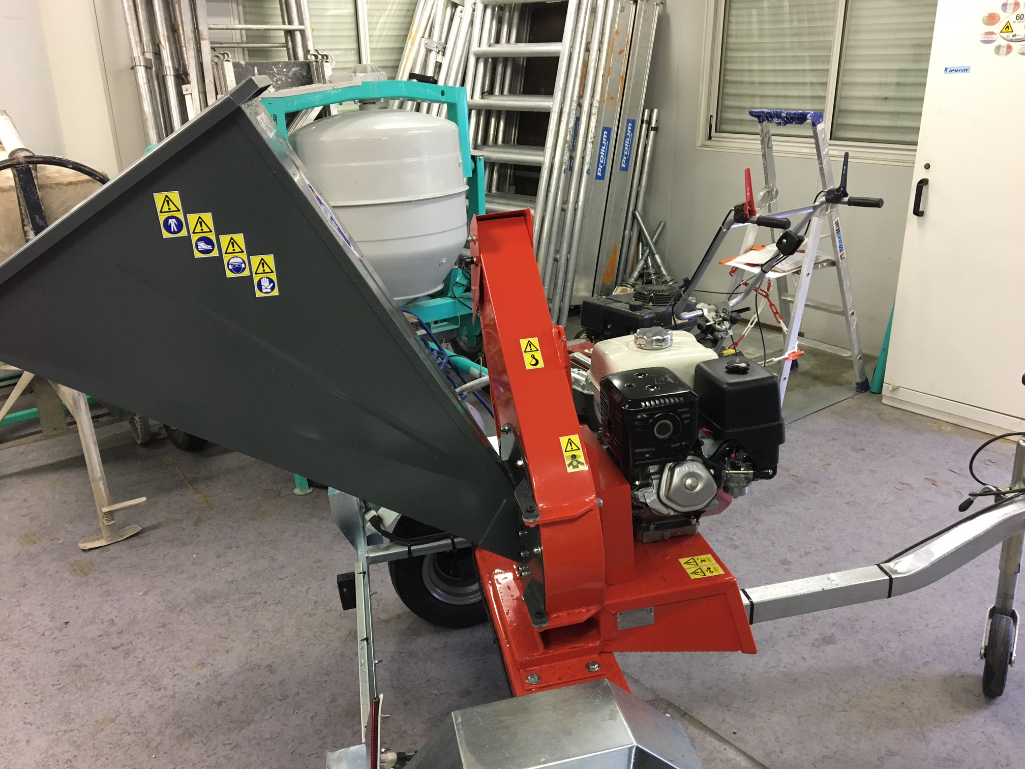 Ce broyeur est monté sur un chassis tractable. Une simple attache remorque sur votre véhicule suffit pour le transporter.Caractéristiques techniques :