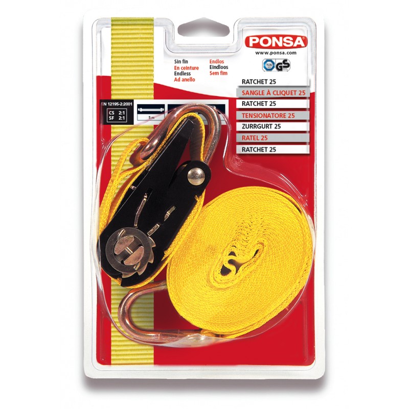 SANG6 : Sangles 5 mètres à cliquet  - Ponsat Ratchet - 25mm