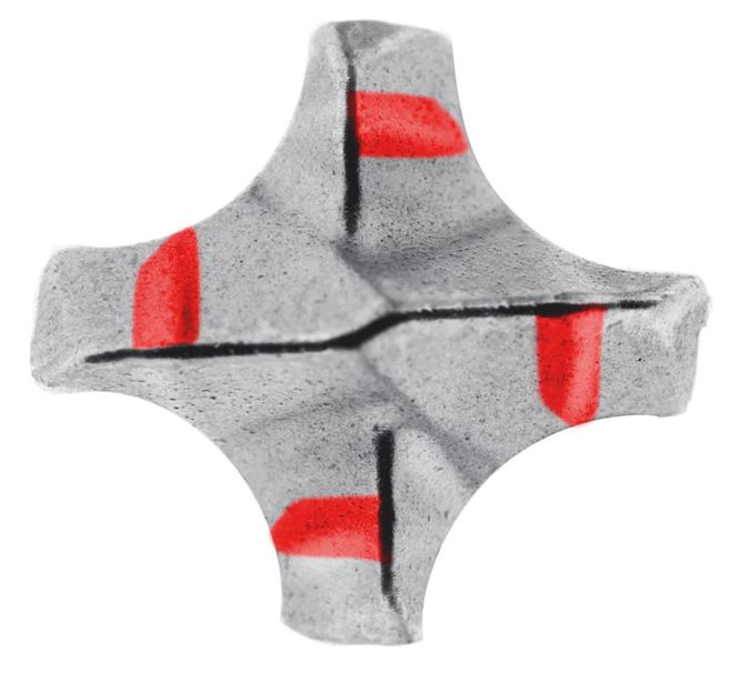 La géométrie des quatre arêtes de coupe à 90° (jusqu'à Ø 10 mm avec tête en carbure monobloc) empêche l'accrochage ou le décentrage du foret lors du perçage, par ex. de renforts.