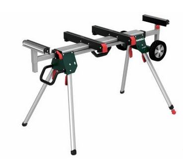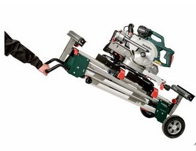 Socle pour scie à onglets léger et robuste avec fonction Trolley pour l'utilisation mobile avec même avec la scie montée.
