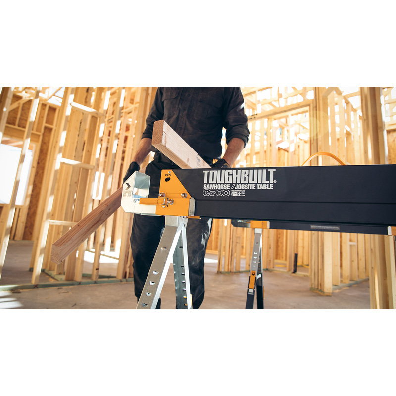 Le tréteau de chantier ToughBuilt TB-C700-2 est durable, robuste. Construit à 100 % en acier de haute qualité, ce tréteau de sciage a une capacité remarquable de 590Kg à lui seul et de 1180Kg par paire.