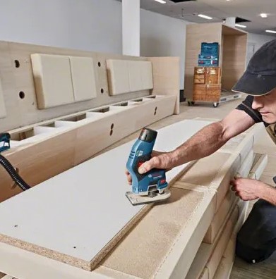 Cet outil est conçu pour l’affleurage dans le bois et le plastique. Elle est par ailleurs compatible avec toutes les batteries et tous les chargeurs 12 V de Bosch Professional (Professional 12V System).